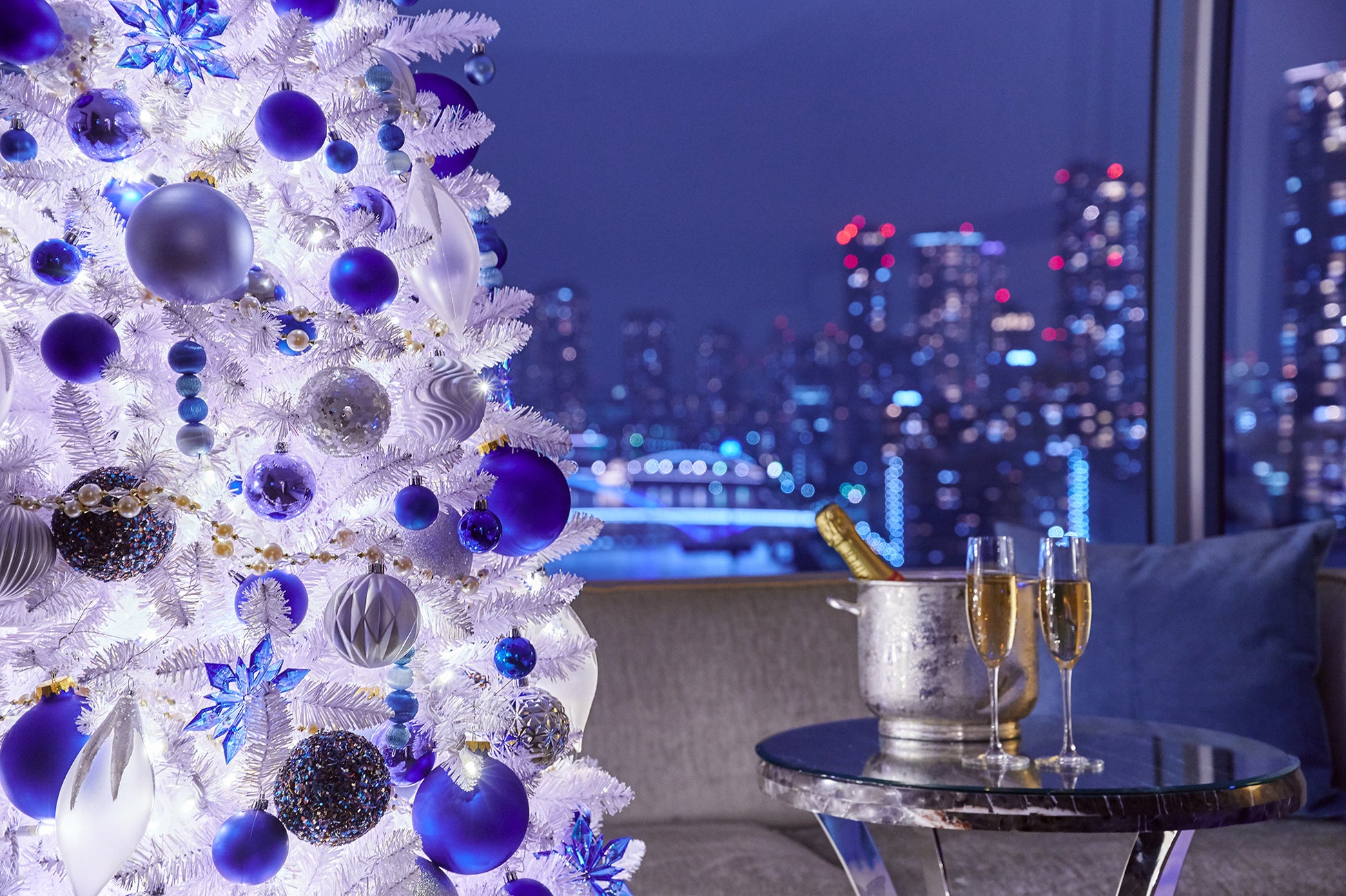 クリスマスムード溢れる幻想的な空間で、煌めく東京湾の夜景とともに思い出に残る特別なクリスマス