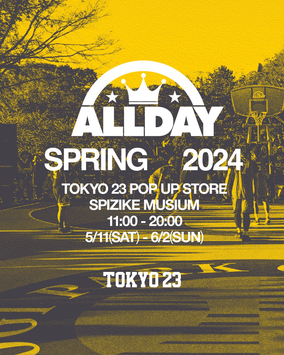 TOKYO23ではALLDAYの開催に合わせPOP UPを開催中。SPIZIKEに合わせ店頭をイエローでジャック。