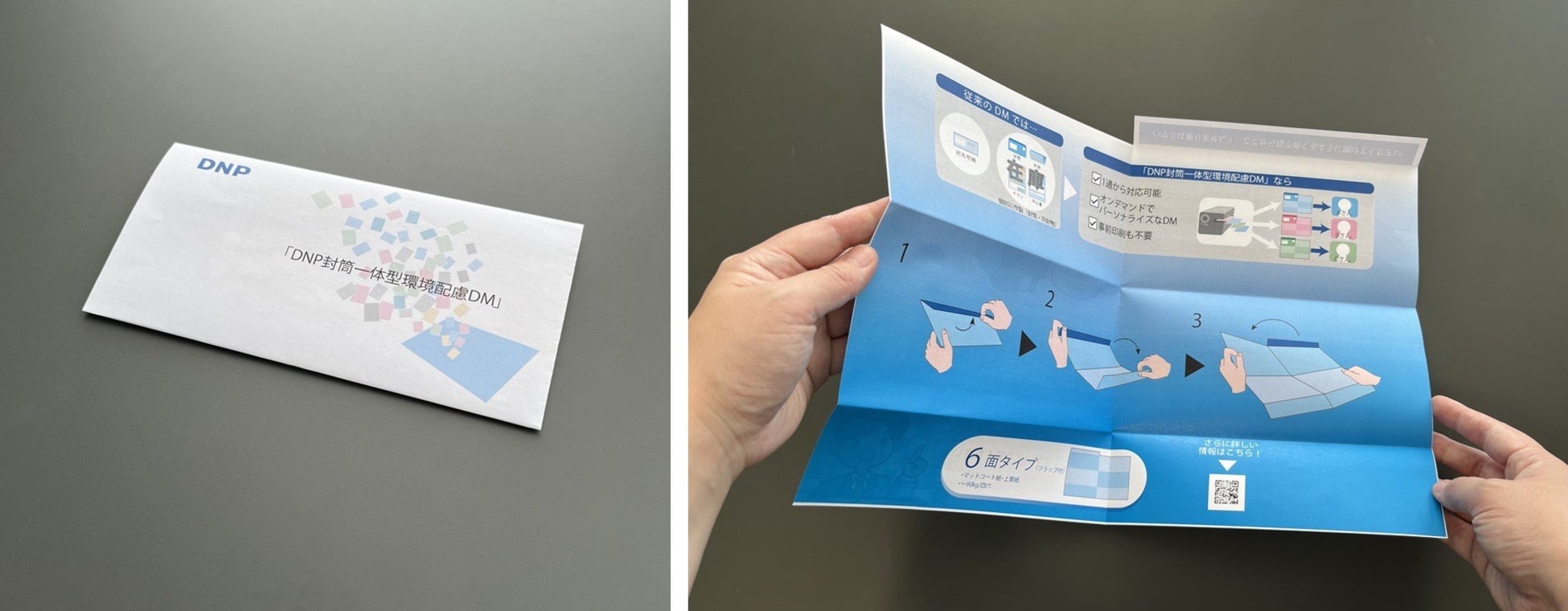 大日本印刷株式会社(DNP)は、1枚の用紙の表裏全面にオンデマンド印刷し、ふちをのりで圧着することで封筒を使わず郵送できる封筒一体型ダイレクトメール(DM)「DNP封筒一体型環境配慮DM」の販売を、2024年10月1日(火)に開始します。