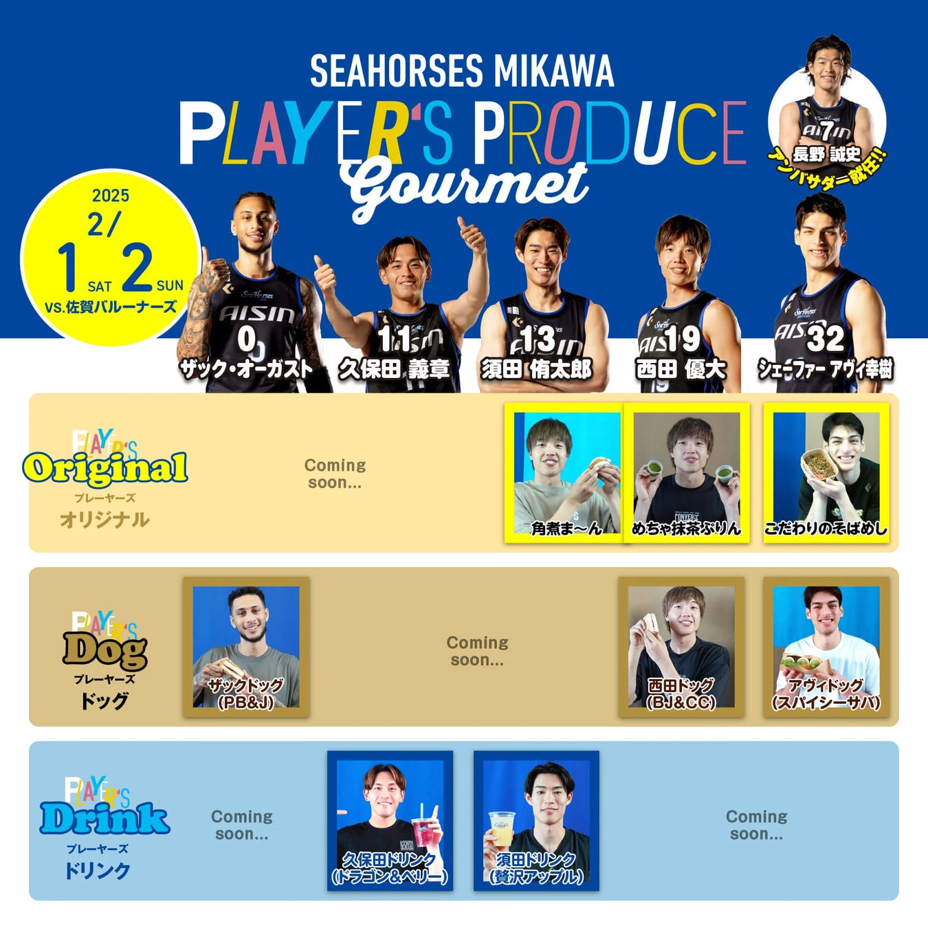 2/1(土)、2(日)佐賀バルーナーズ戦にて、選手プロデュースグルメを販売します!今回新たに登場したのは、西田優大選手プロデュースの角煮まんと抹茶プリン、アヴィ選手のそばめしです!プレーヤーズドリンクとプレーヤーズドックを同時購入をしていただいた方を対象にストローチャーム付きセットに変更可能です。