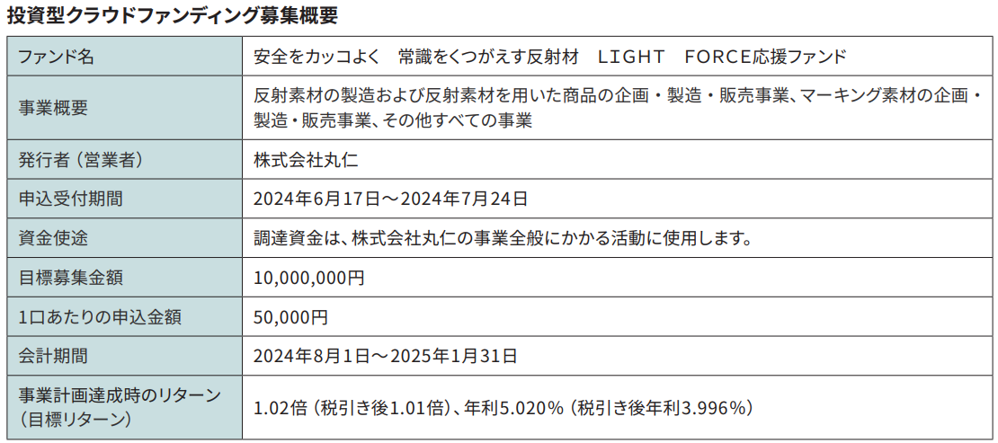 Sony Bank GATE では、当事業を含む事業運営への出資を1口50,000円、目標募集金額10,000,000円で募集します。
