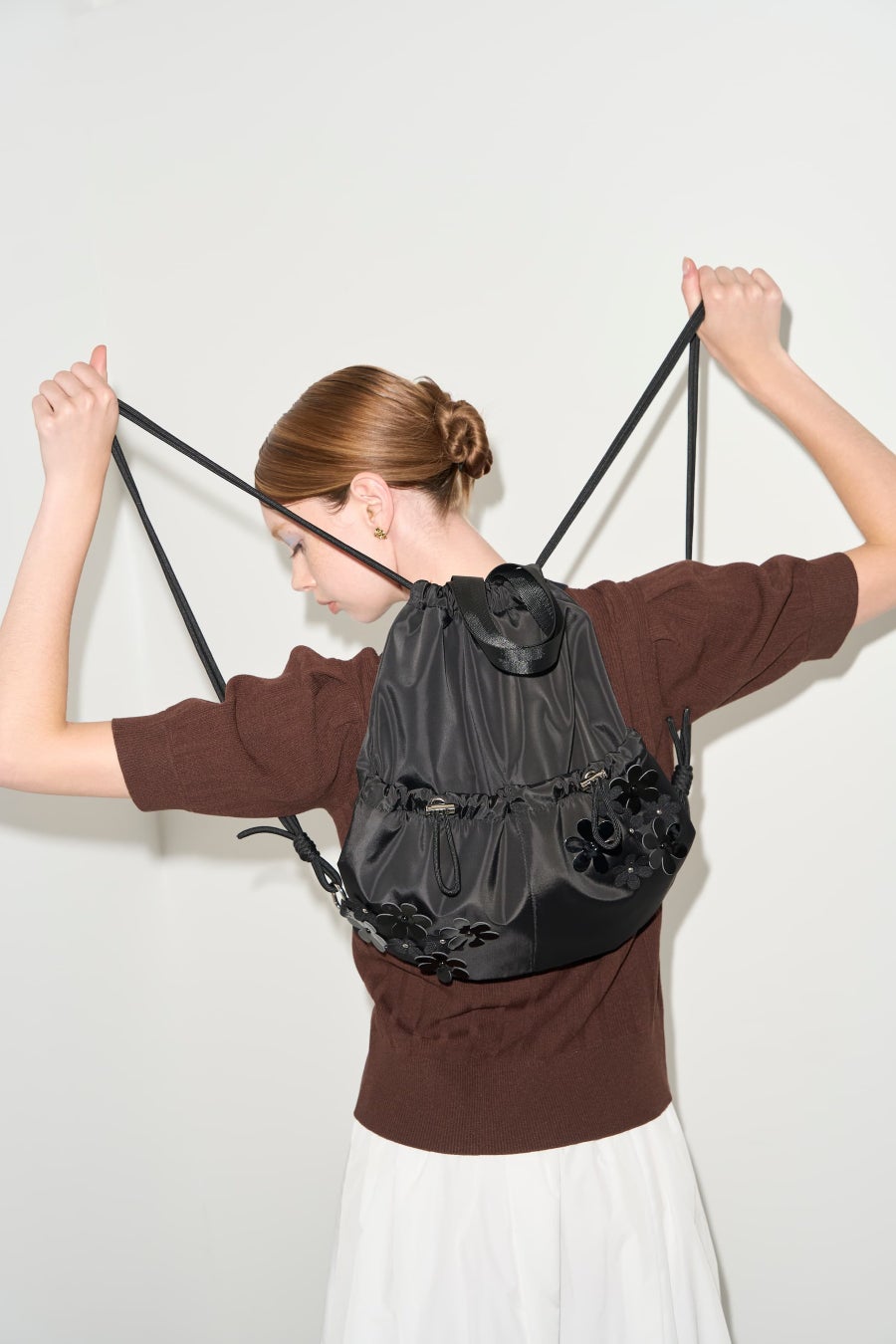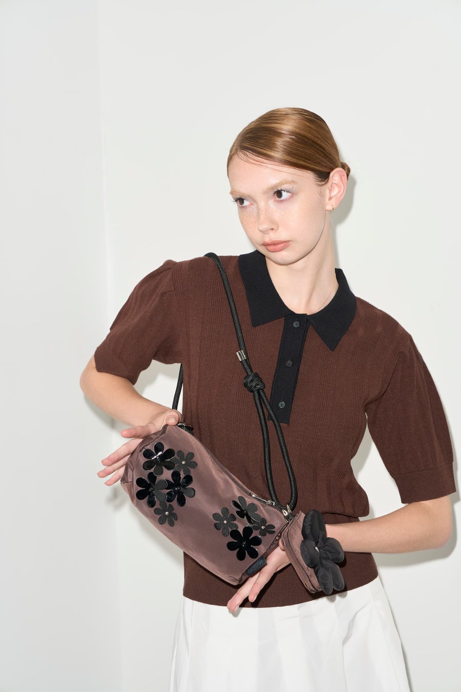 「FLOWER コレクション」はアイコニックな花モチーフにブラックとブラウンのシックなカラー使いで洗練さを加えました。花モチーフのパッチはエナメル素材と布帛素材の異なる風合いを組み合わせ、立体感と表情の豊かさを演出しました。