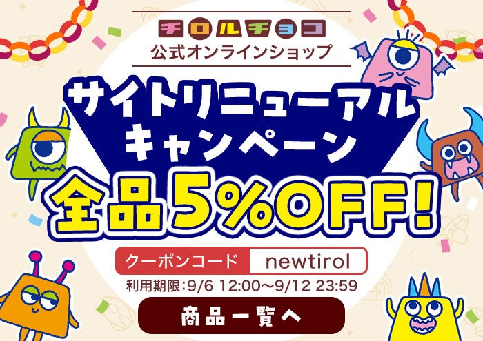【全品対象5%OFFクーポン配布中】本日、チロルチョコ公式オンラインショップがリニューアルオープン♪ここでしか買えない限定商品も販売中!