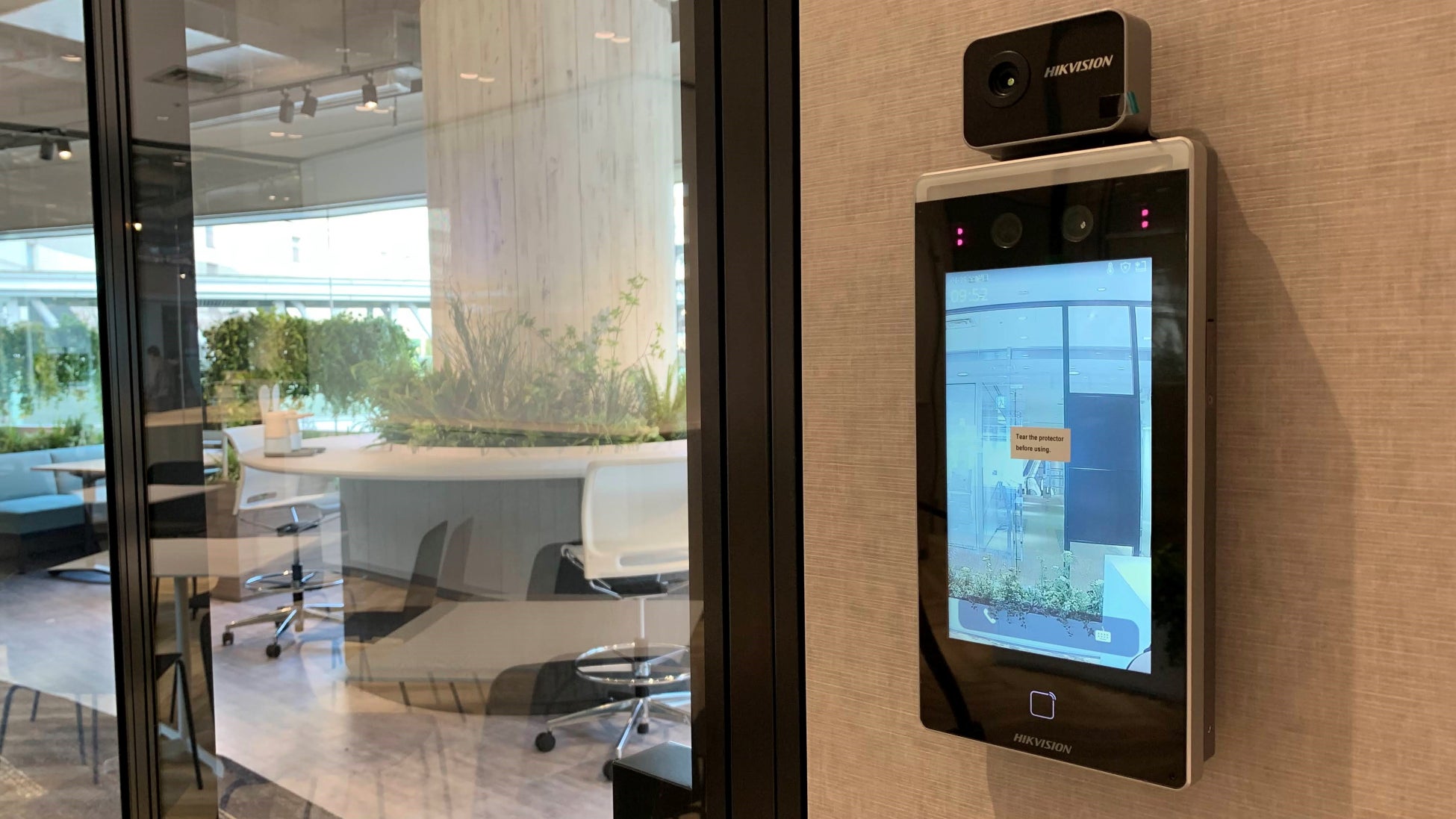 メインフロアの入り口には高度なセキュリティを誇る顔認証システムを導入。顔以外にも、指紋や認証コードの登録も可能。本システム導入により、ストレスフリーでフロアの出入りが実現。