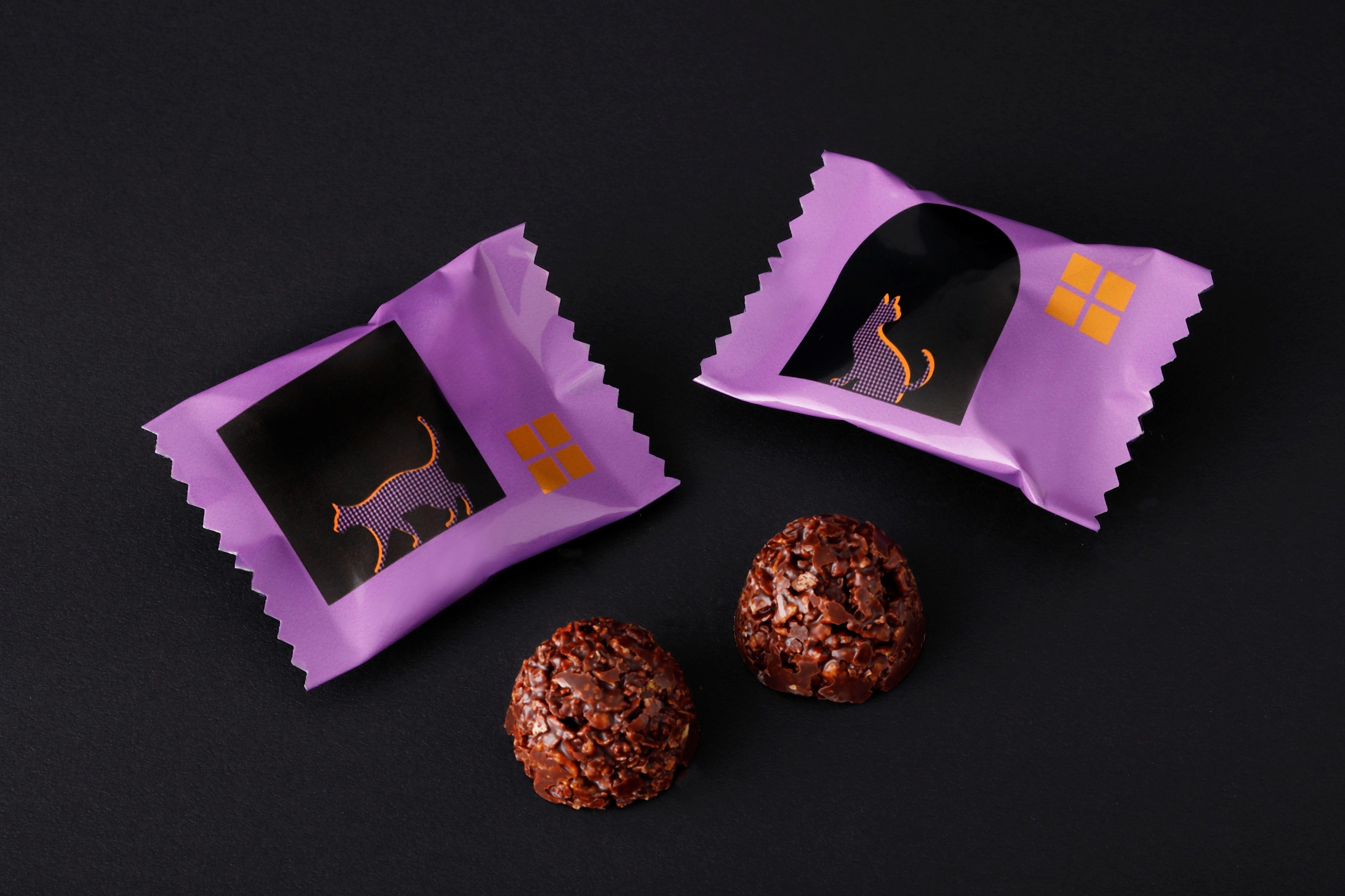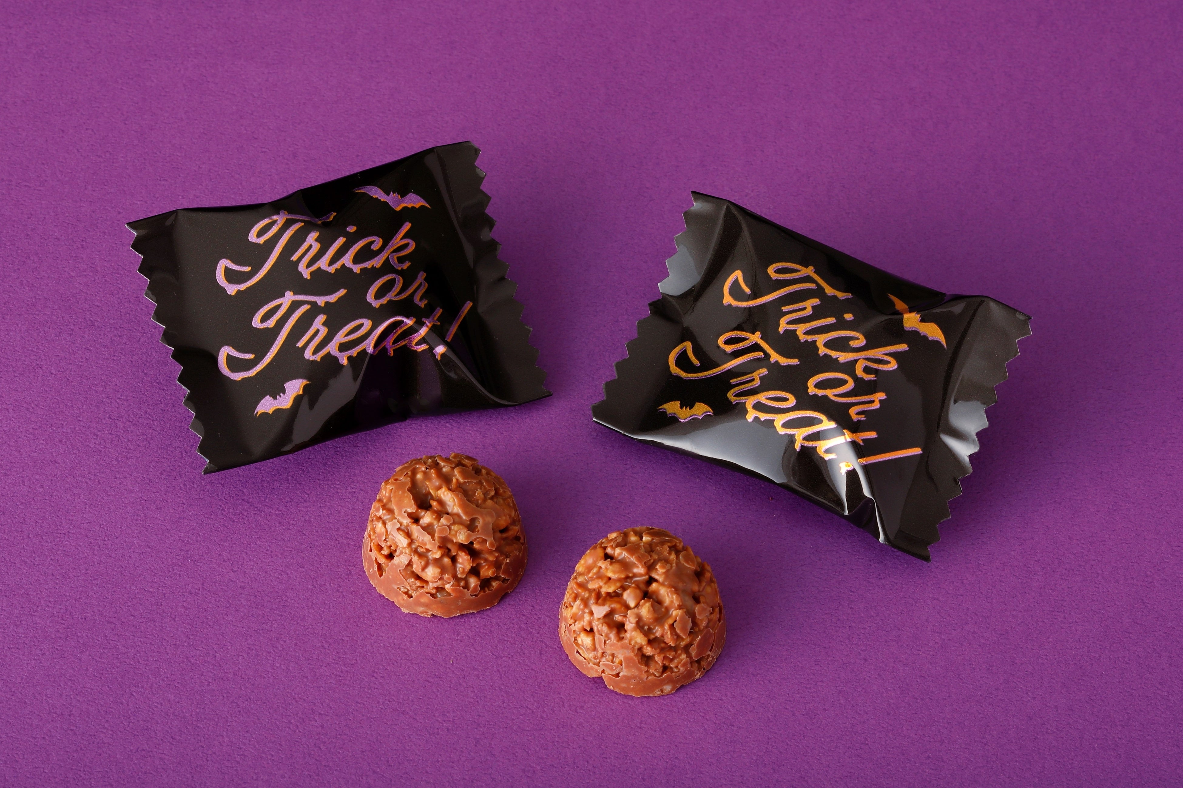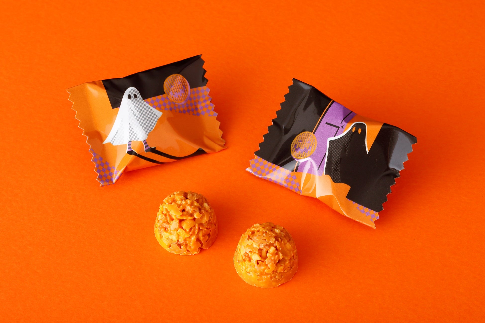 待ちに待ったハロウィンパーティー。おばけの仮装に身を包み、こどもたちがお菓子を求めて外へ出かける様子 が描かれた楽しいパッケージに 3 種のフレーバーが楽しめるクランチチョコレートを詰め合わせました。 ハロウィンのワクワク感がたくさん詰まった『ハロウィンショコラ』は、大切なご友人へのギフトとして、またご家族 と共に味わっていただきたい秋のおすすめスイーツです。