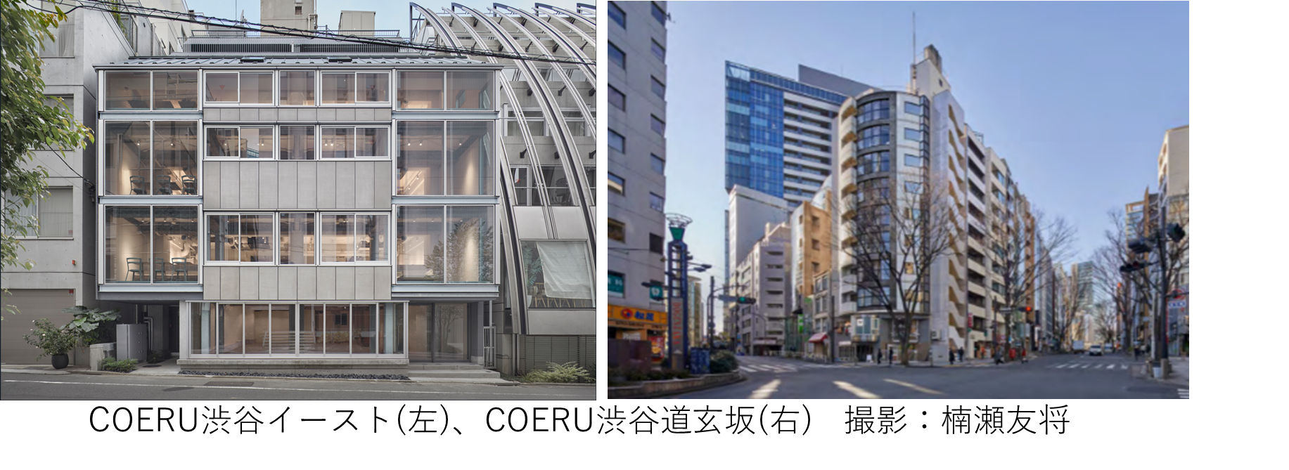「COERU」は、資材・資源の再生による環境への配慮(環境先進性)、フレキシブルな場の提供(フレキシ ブル性)、自然や素材を活かした、「再生」を想起させるデザイン(クリエイティビティ)の 3 点を軸とした、「RE:PLAY NATURE」をコンセプトとした都市型コンパクトビルシリーズです。COERU 渋谷イースト・COERU 渋谷道玄坂では再生建築の手法を用い、新築とは異なる不動産価値を生み出しました。COERUシリーズは、既存施設の状態を見極め、新築・再生建築の両面で展開をしています。