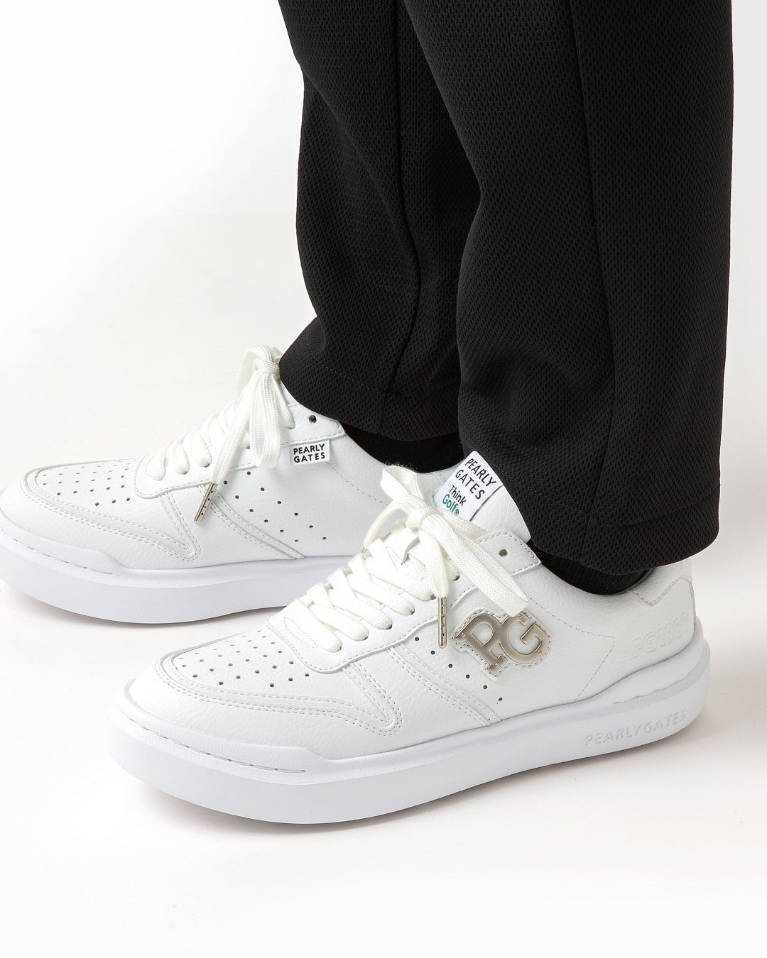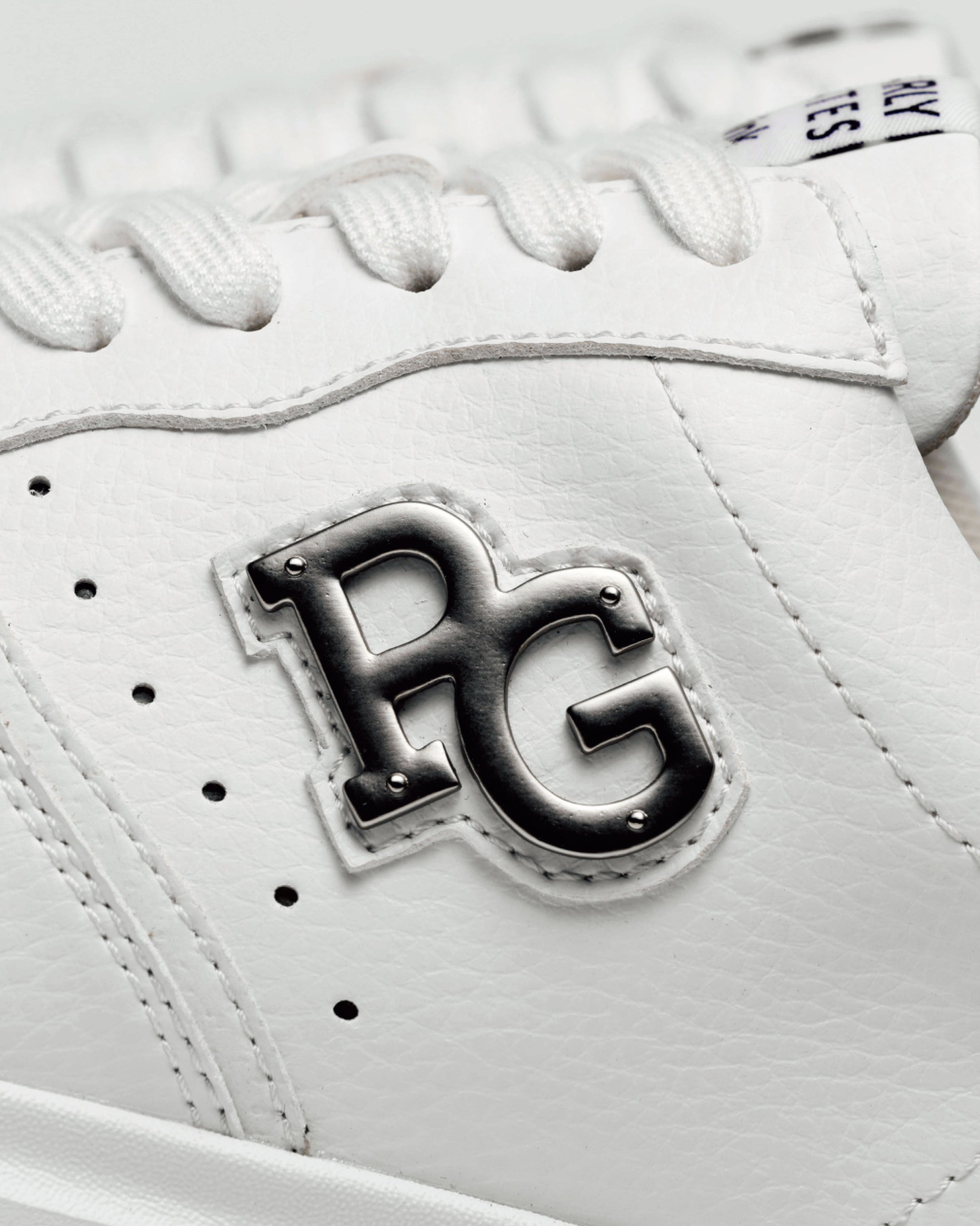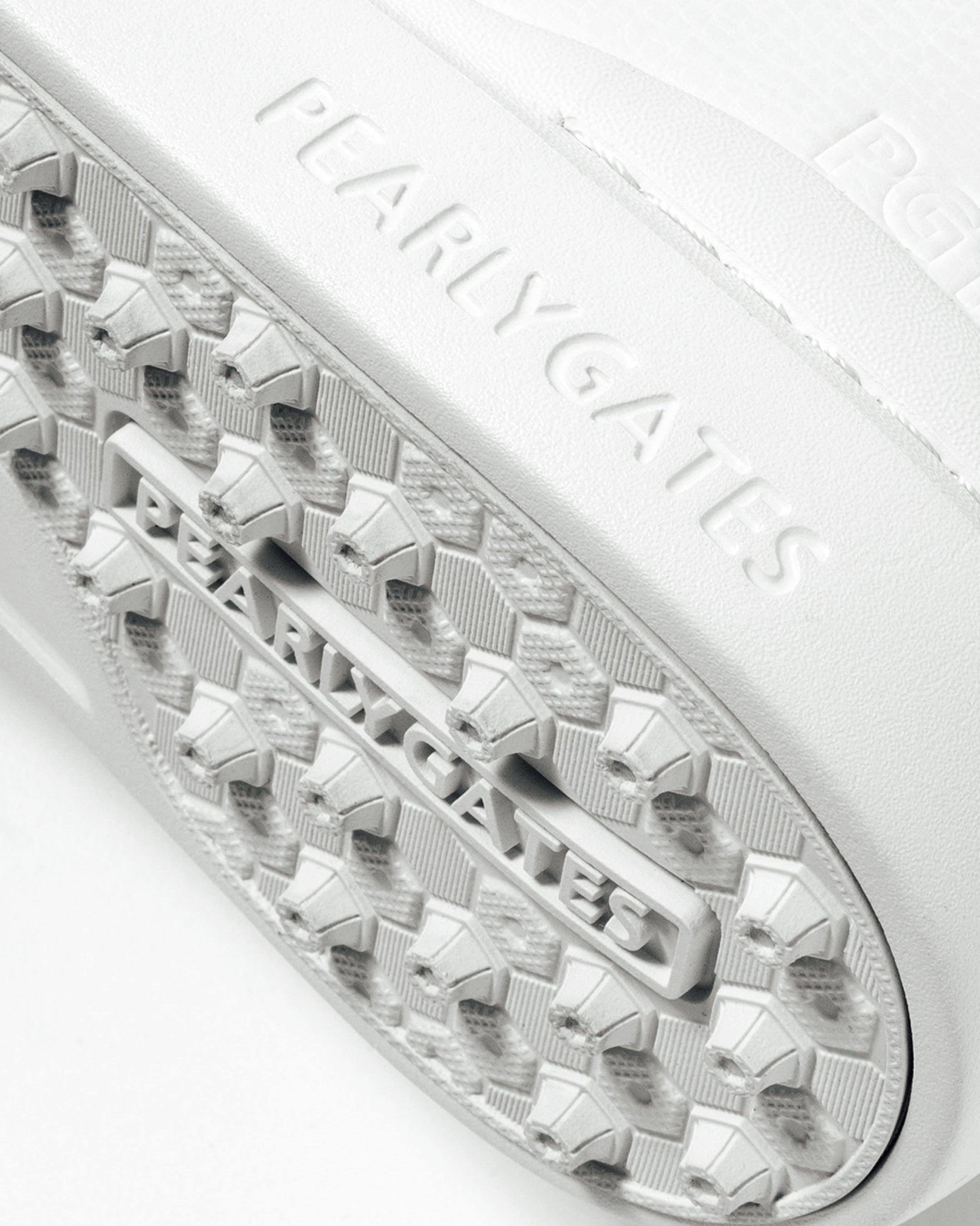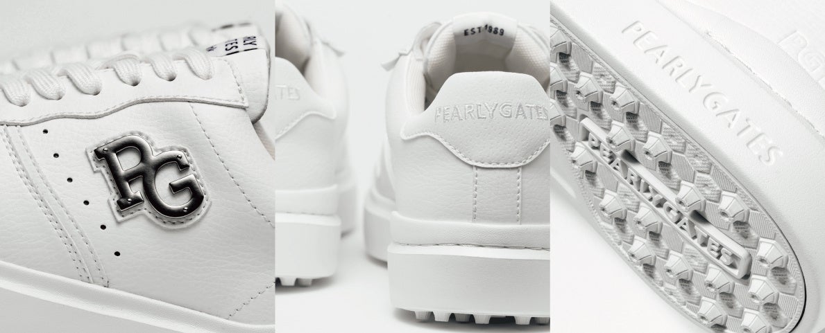 アッパーには、ウェアと合わせやすく存在感のある上質なラバータイプの合成皮革素材を採用。丁寧に施したステッチワークやロゴ刺繍、ミッドソールには屈曲性のあるEVAを使用し、軽量化を実現。さらにラバーソールでスパイクレス仕様の底面は、しっかりとしたグリップ力による歩行性の高さも兼ね備えプレーするうえで必要な機能性を余さず搭載しました。側面に輝く"PG"のステンレスプレートが高級感を醸し出します。
