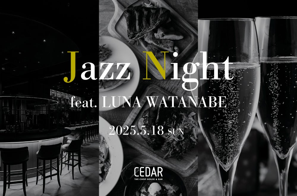 全国でホスピタリティビジネスを展開する感動創出企業の株式会社ポジティブドリームパーソンズ(本社:東京都渋谷区、代表取締役社長:西村 輝夫) が運営するアメリカンダイニングレストラン「CEDAR THE CHOP HOUSE & BAR(セダー ザ チョップハウス & バー)」では、ディナータイムにジャズバンドの生演奏を楽しめる「Jazz Night」を毎月開催中。5月18日(日)にはテレビ出演をはじめ、数々の受賞歴のあるサックスプレイヤーの渡邉 瑠菜(わたなべ るな)氏をお招きいたします。ジャズバンドの生演奏を聴きながら、本格アメリカ料理をお楽しみいただける贅沢な一夜をお過ごしください。