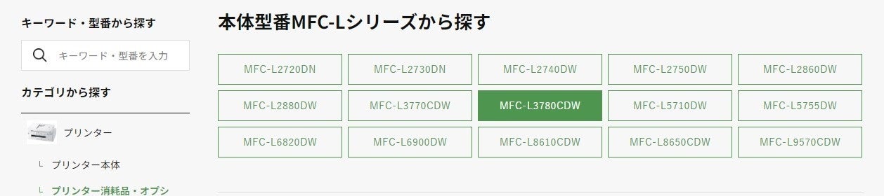 製品の型番を選択するだけで、最適な消耗品やオプションを見つけられる。