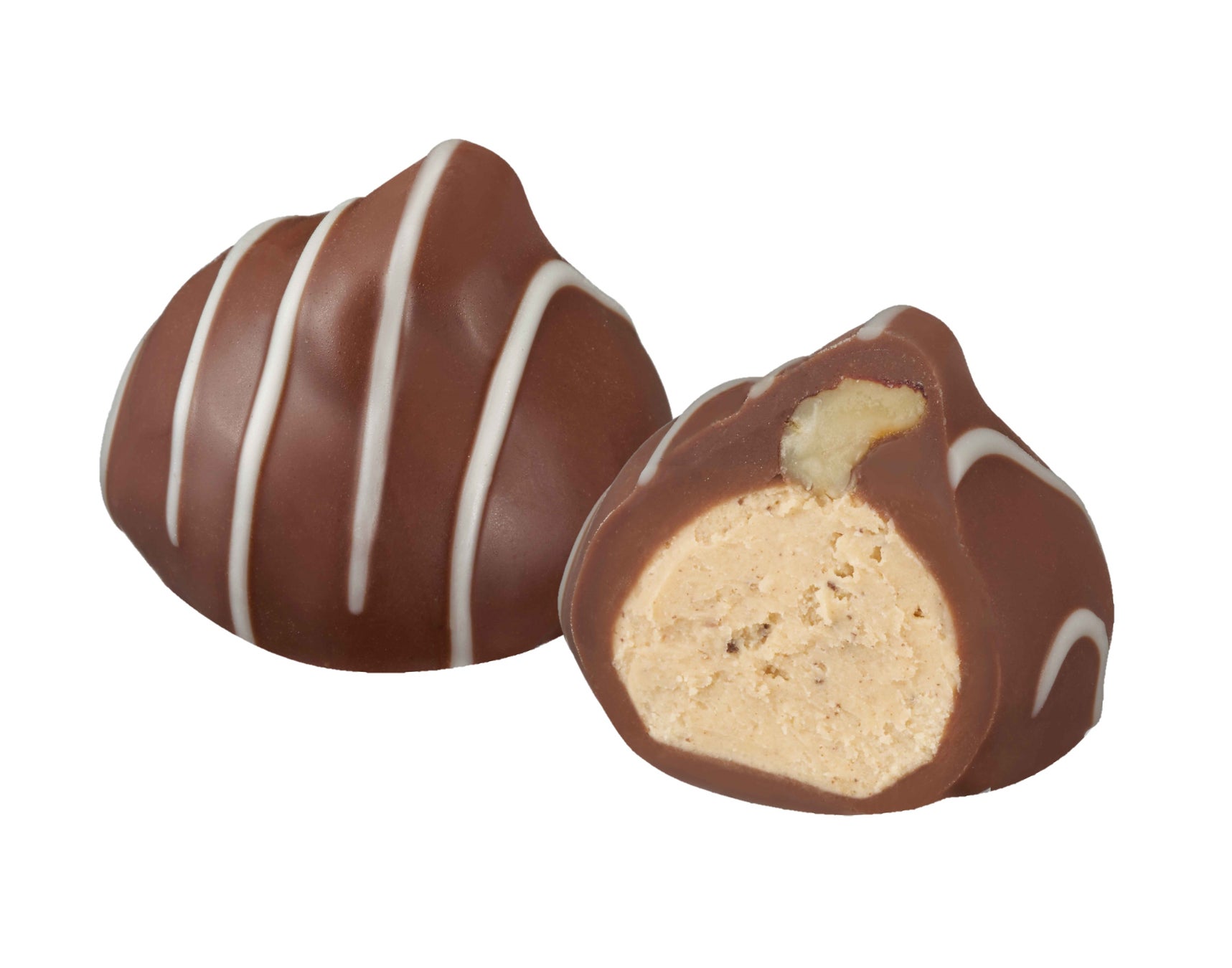 ベルギーで古くから愛されているコーヒー風味のプラリネスイーツ、“マノン”フレーバーのチョコレートです。口に入れた瞬間から広がるコーヒー風味のアーモンドプラリネに、香ばしいペカンナッツを乗せてミルクチョコレートで包み、ホワイトチョコレートのラインで飾りました。ゴディバのシェフが子どもの頃から慣れ親しんでいる、ベルギーの昔懐かしい味わいをお楽しみいただけるひと粒です。