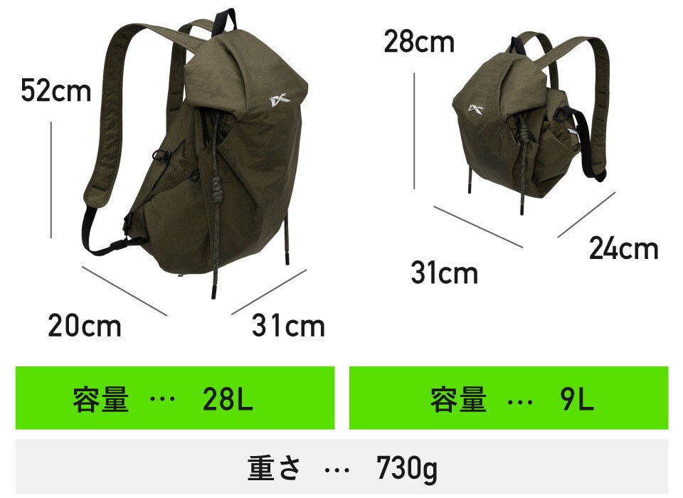 容量が9Lから28Lに変化する「2wayバックパック」支援受付開始