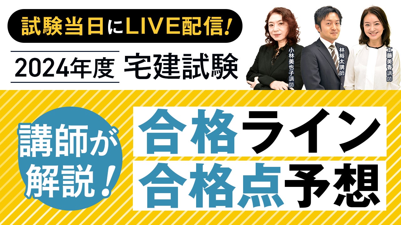 アガルートアカデミーは2024年宅地建物取引士試験の試験当日に「解答速報」、「総評動画」「合格ライン・合格点予想」YouTubeLIVE配信を会員登録不要で無料公開いたします。ぜひ、試験の振り返りにお役立てくださいませ。