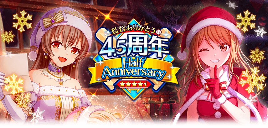 ハーフアニバーサリー第3弾を記念した「監督ありがとう!4.5周年ログインボーナス第3弾」や、クリスマスを祝う特別ログインボーナスを開催いたします。絆の結晶 (極) やSSR確定チケットなど、貴重なアイテムをお受け取り可能です。