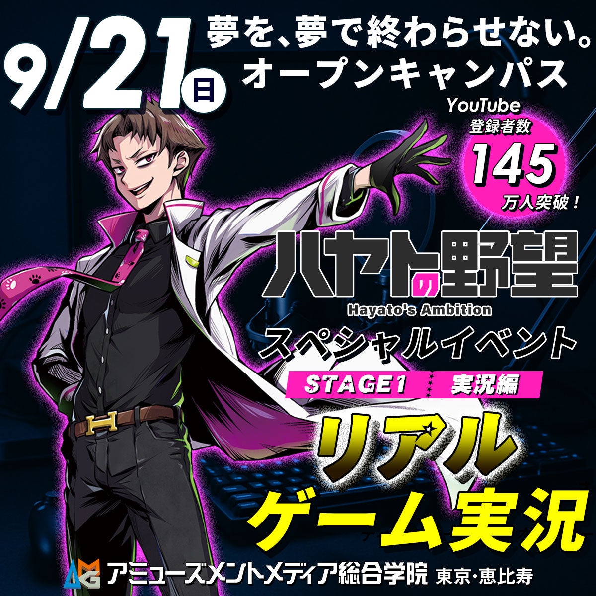 YouTube登録者145万人突破!「ハヤトの野望」リアルゲーム実況などスペシャルイベント【 9/21(日)】オープンキャンパスにて開催★直筆サイン入りアクスタプレゼントも★