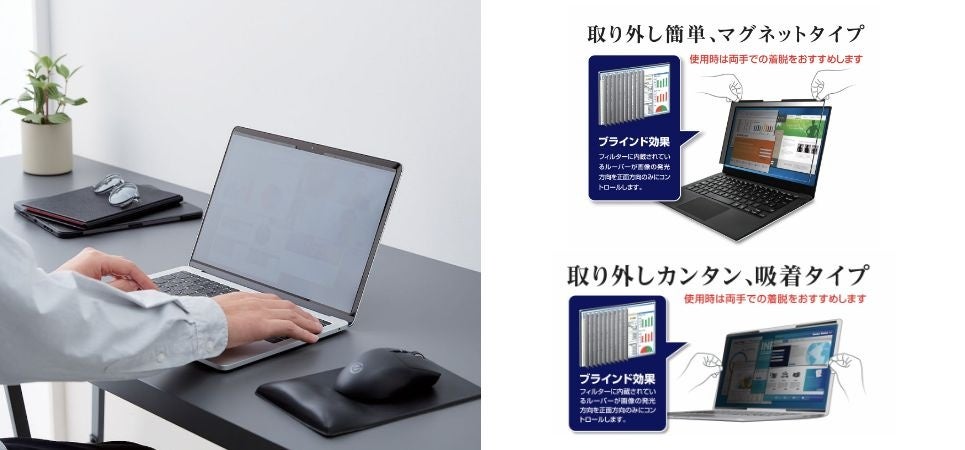 移動中やオフィスでの周囲の視線をガード!マグネットタイプ・吸着タイプの2タイプから選べるのぞき見防止フィルター 7モデルを新発売