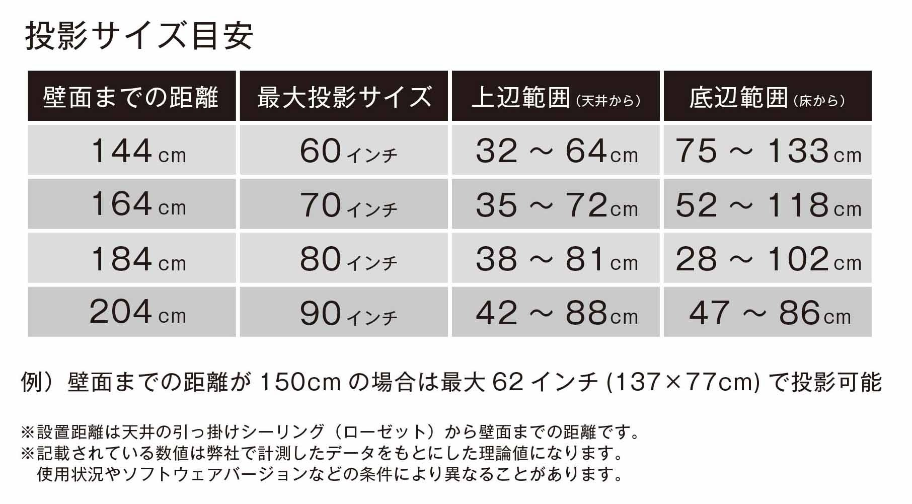 投影画面は見やすい位置に調整可能です。短焦点レンズを採用しているため、壁との距離が近くても投影することが可能です。ワンルームなどの一人暮らしの空間はもちろん、ファミリー世帯の個室や小上がりスペースなど、限られた空間にも柔軟に対応します。