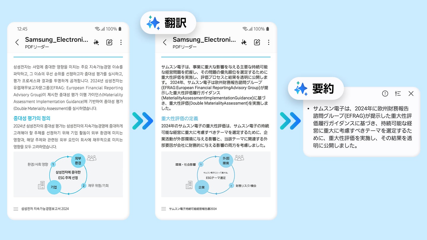 ウェブアシスト※12…Samsungブラウザアプリのさまざまなウェブページを翻訳・要約します。