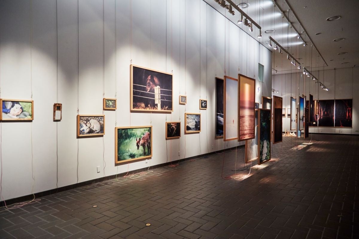 入り口のエスカレーターを降りてすぐの展示会場(ギャラリーC)に入ると、天井が高く、開放感のある空間に川村喜一の写真作品が並ぶインスタレーションがある。東京で生まれ育った川村(1990年生まれ)は、2017年、北海道知床半島に移住して作家活動を続けている。