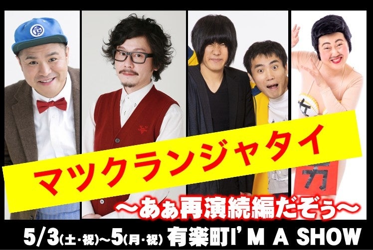 2023年12月に初演が上演され、昨年東京・大阪・名古屋で再演された「マツクランジャタイ」の続編の開催が決定!前回から引き続きマツモトクラブ、ランジャタイ、あぁ~しらき、しゃばぞうが出演します。