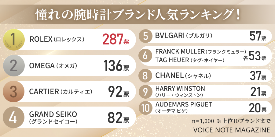皆さんの憧れの腕時計ブランドはランクインしましたか?