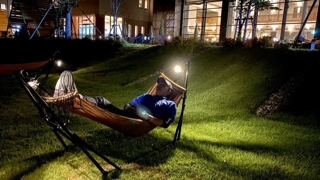 スキージャム勝山では、昼間は広大なゲレンデを一望する美しい風景を、日没後には奥越の満点の美しい星空を、ハンモックに寝そべりながら眺めることもできます。