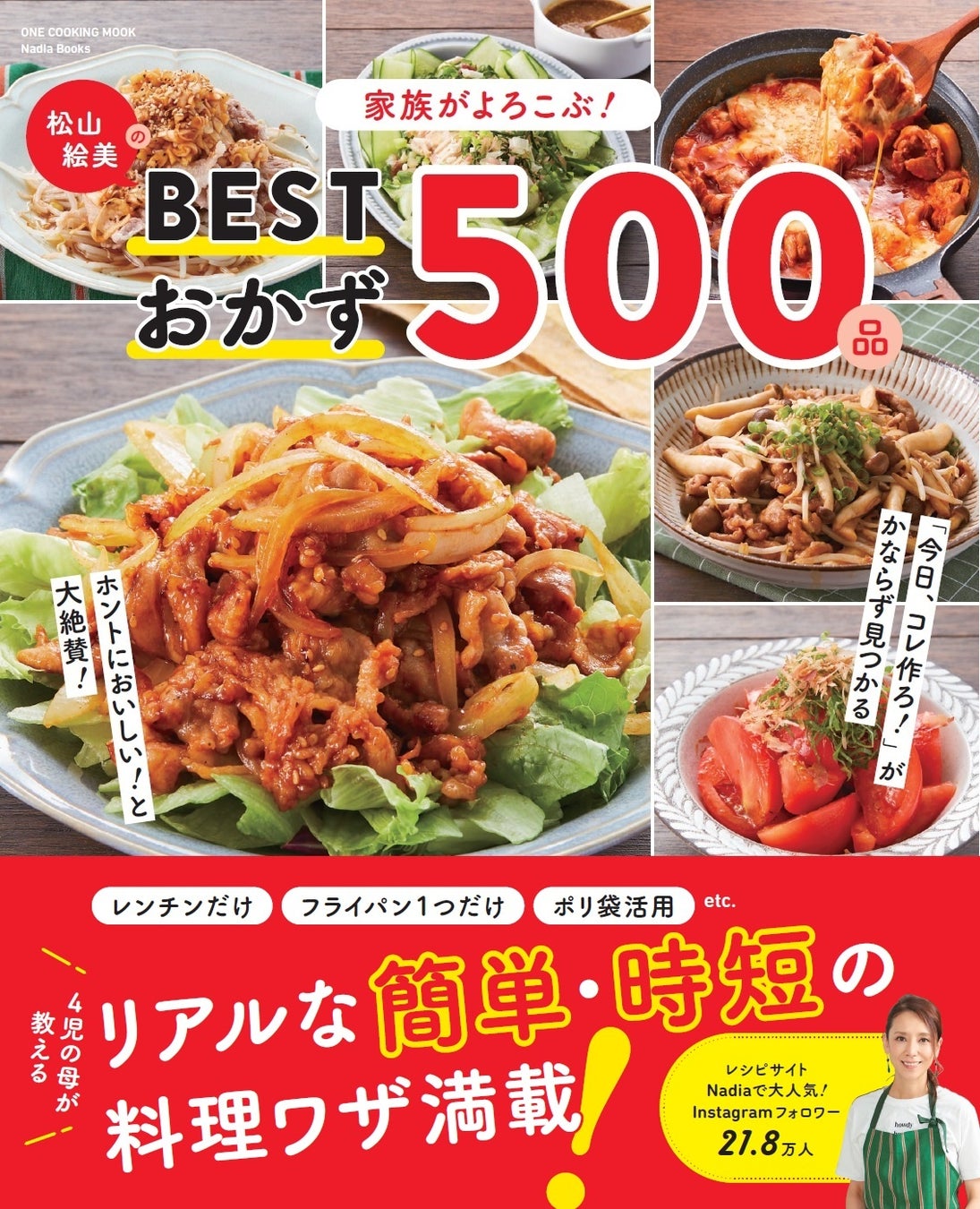 大充実の500品レシピは、著者の松山絵美さんがこれまでNadiaやInstagramに掲載してきた4,500超のレシピから好評のレシピだけを厳選。書き下ろしのレシピも掲載し、これまでの著書では紹介してこなかったレシピだけを紹介しています。毎日使えるおかずからお弁当レシピまで、役立つこと間違いなしのレシピです。