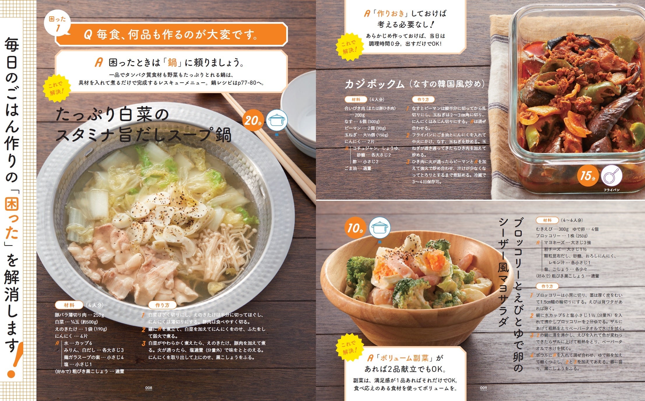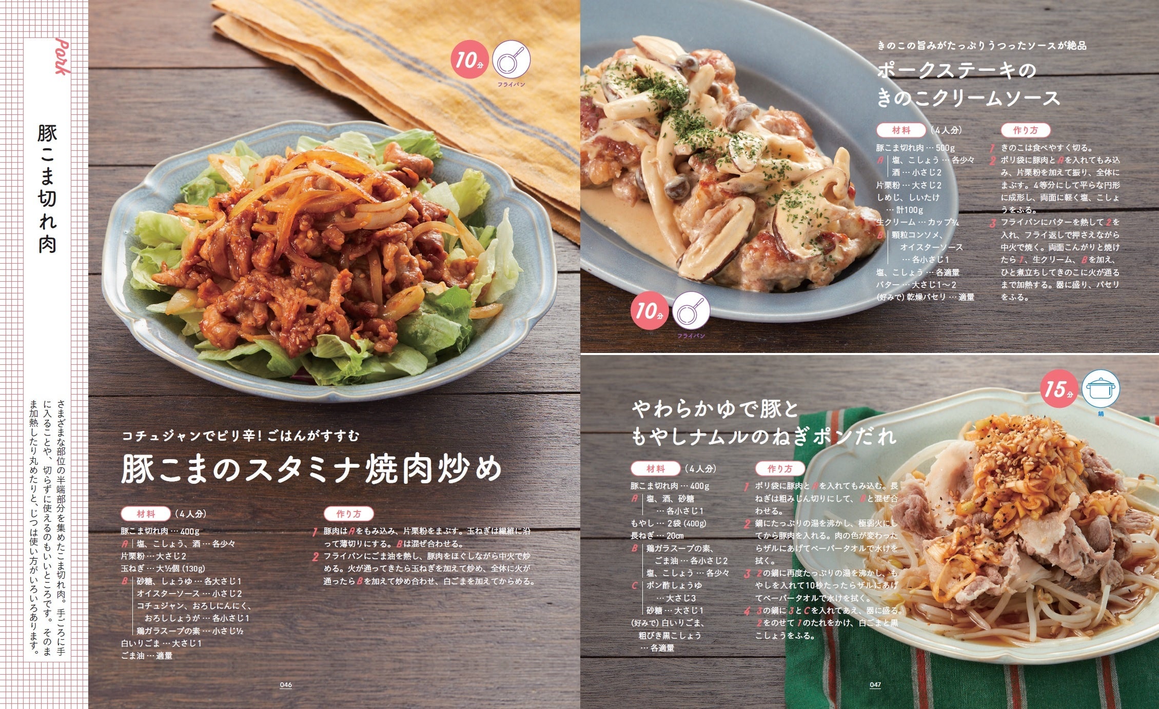 本書ではレシピを4人分で掲載しているので、家族全員分のおかずを準備したい人にぴったり。めんどうな分量の計算なしに、レシピ通りに作れば家族分の料理を作ることができます。