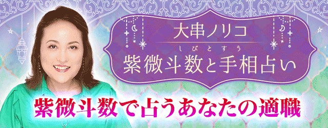 人気占いバラエティ番組出演で今大注目の鑑定士・大串ノリコが監修する、紫微斗数(しびとすう)と手相占いに特化したスマホ専用月額占いサイト『大串ノリコ 紫微斗数と手相占い』。現在『適職占い|あなたの才能・天職・訪れる転機を紫微斗数で無料鑑定』を無料で公開中です。この機会にぜひご利用ください。