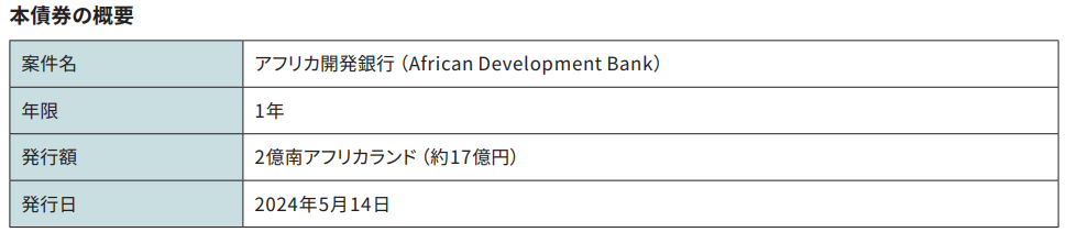 アフリカ開発銀行が発行する「フィード・アフリカ・ボンド」への投資のお知らせ