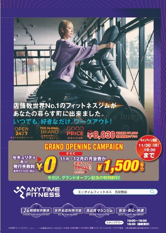 24時間フィットネスジム【エニタイムフィットネス五反野店】11月19日(水)グランドオープン