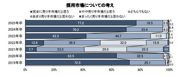 「完全に売り手市場」と回答した企業がさらに増加。8割近くに(77.2%)
