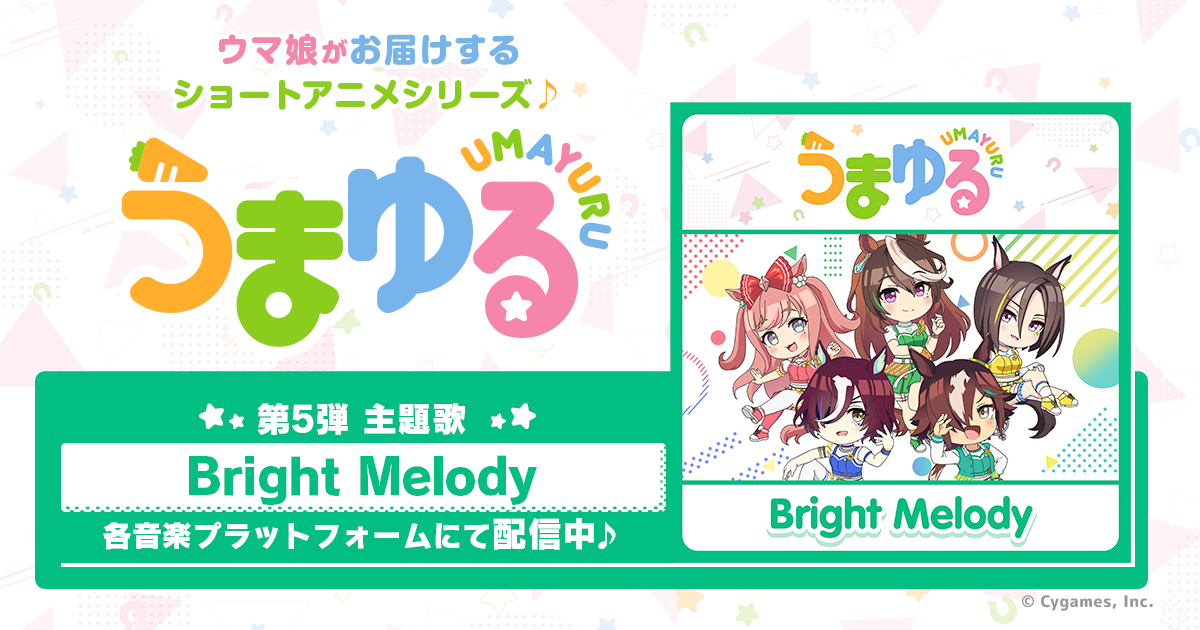 ゲームの企画・開発・運営事業を展開する株式会社Cygames(本社:東京都渋谷区、代表取締役社長:渡邊耕一)は、弊社が展開するクロスメディアコンテンツ『ウマ娘 プリティーダービー』について、新作ショートアニメシリーズ『うまゆる』の第5弾主題歌を、本日2月6日(月)より配信開始したことをお知らせします。