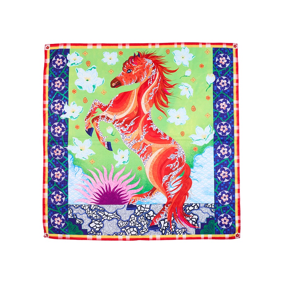 日本の風呂敷から着想を得た、繰り返し使えるギフトラッピング「ノットラップ」には、ベトナム出身のイラストレーター・Jillとのコラボデザインが登場します。午をモチーフにしたデザインは、「心の炎を絶やさず、勇気を持って高く羽ばたいてほしい」(Keep your flame alive. Brave heart, bold spirit—let it soar.)という願いを込めて制作されました。※100%再生プラスチックボトル*1