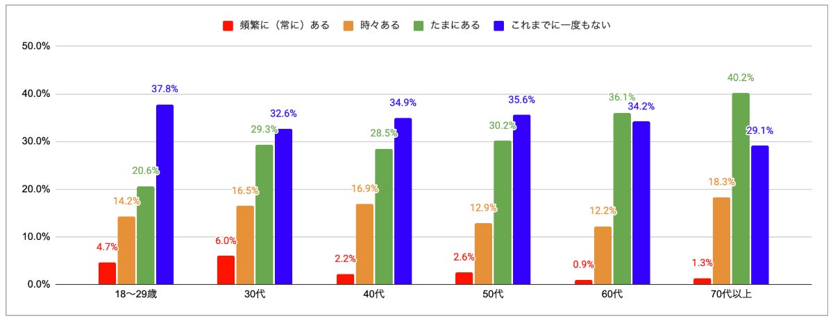 世代別でみると、30代が22%と最も高く、60代が13%と最も低かった