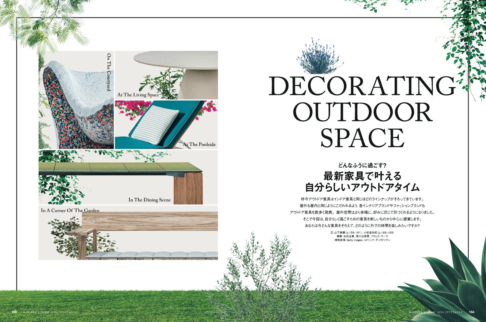 屋外も屋内と同じようにこだわれるよう、各インテリアブランドやファッションブランドもアウトドア家具を数多く発表。屋外空間はより多様に、好みに応じて形づくれるようになりました。