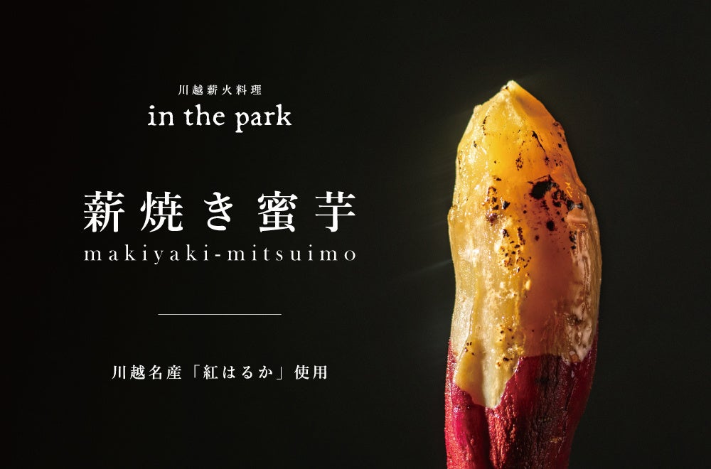 オープン当初から人気のあった薪火を使用した焼き芋の、素材と調理法を追求しました。川越の名産「紅はるか」を、伝統的な落ち葉堆肥農法で育てる早川農園から仕入れ、72時間かけてじっくり蜜芋に。薪火の遠赤外線で焼き上げることで、ねっとり濃厚な甘みと香ばしい薫香が生まれます。2年の歳月をかけて辿り着いた、川越薪火料理in the parkの自信作です。