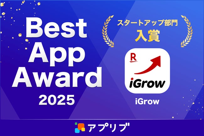 楽天証券株式会社(本社:東京都港区、代表取締役社長:楠 雄治、以下「楽天証券」)は、スマートフォン向け資産づくりアプリ「iGrow®」が、株式会社ナイル(本社:東京都品川区、代表取締役社長:高橋 飛翔、以下「ナイル」)が、本日、2025年12月1日(月)に発表した「アプリブ Best App Award 2025」の「スタートアップ部門」に入賞したことをお知らせします。