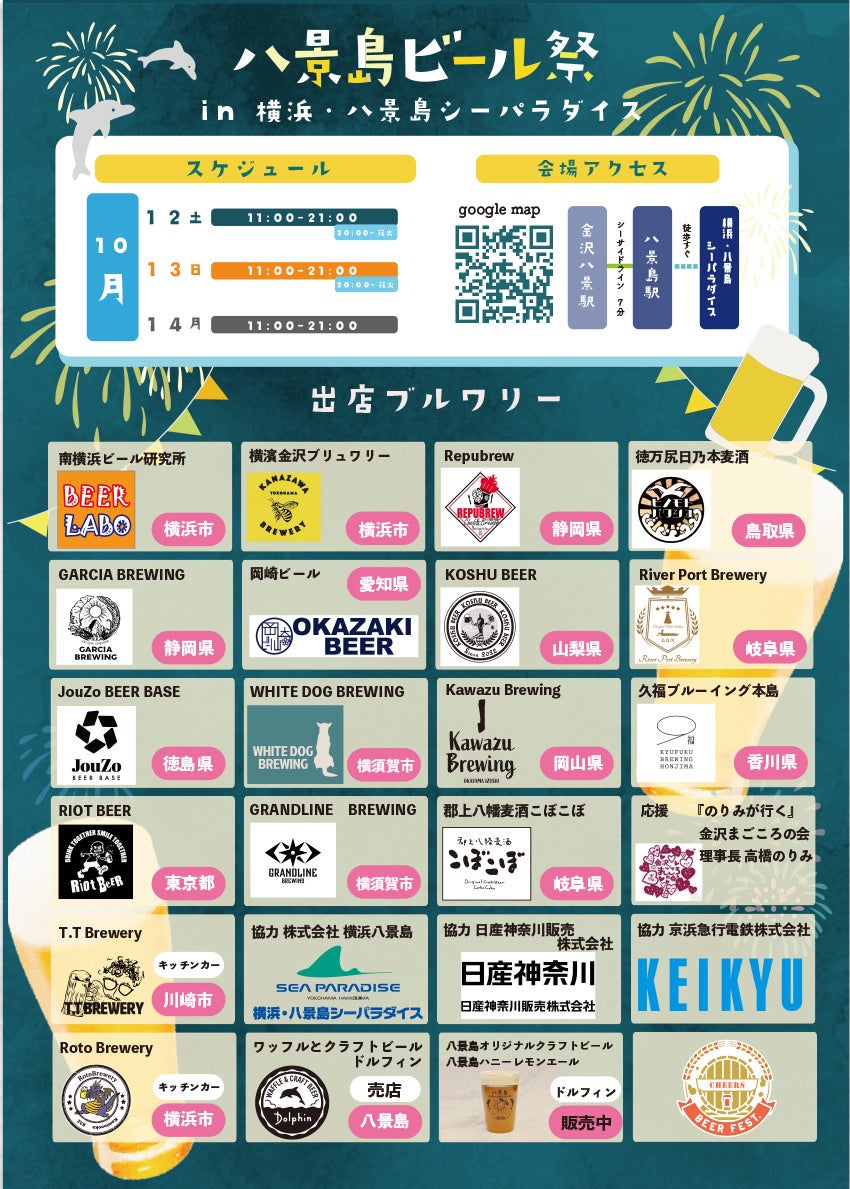 『横浜・八景島シーパラダイス』では、2024年10月12日(土)~10月14日(月・祝)の計3日間、日本各地のブルワリーが集結する「八景島ビール祭 花火とクラフトビール」を開催いたします。