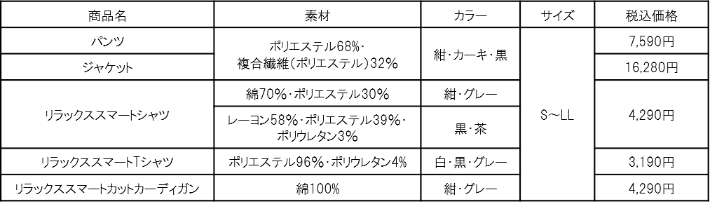 『RSライン』はパンツのほかにも、シャツアウターやパーカーなど多彩なトップスを展開。トップスを変化させることで様々なシーンでお召しいただけます。さらに、カーディガンやコートなど、季節に合わせたアイテムを順次発売予定であり、秋口から冬までシーズンに合わせて様々なコーディネートをお楽しみいただけます。