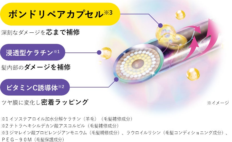 <世界初*1ボンドリペアカプセル*2配合 まとまり向上>