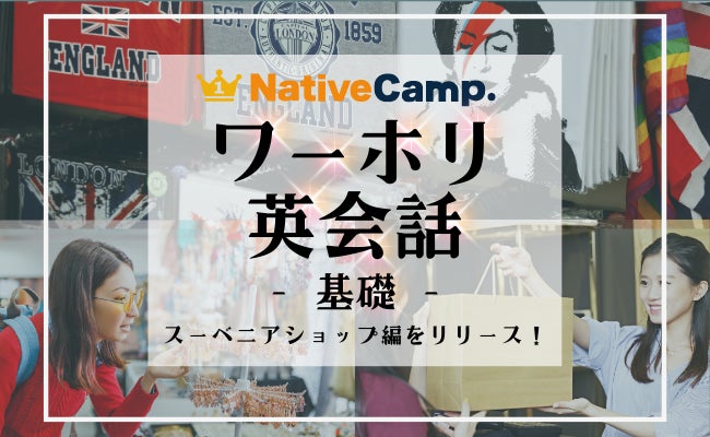 ネイティブスピーカーと回数無制限のオンライン英会話サービス「ネイティブキャンプ英会話」を展開する株式会社ネイティブキャンプ(東京都渋谷区 代表取締役:谷川国洋)は、この度、外国人観光客との接客に必須の英語表現が学べる「ワーホリ英会話 基礎」の『スーベニアショップ』編をリリースしました。