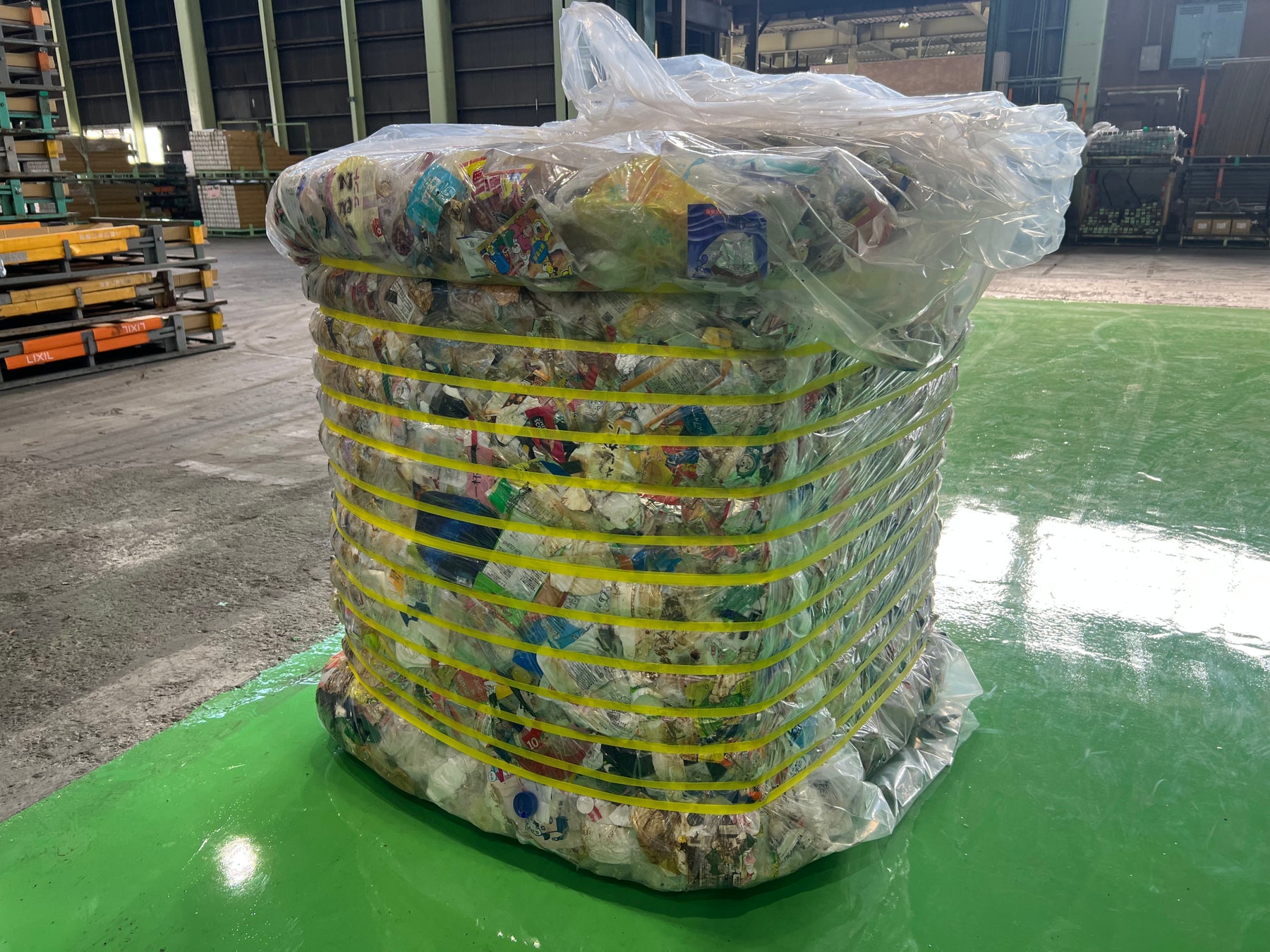 今回導入したレビア生産設備は、再資源化困難な廃プラスチックを微粉砕する工程と、押出成形をする工程を行う設備です。