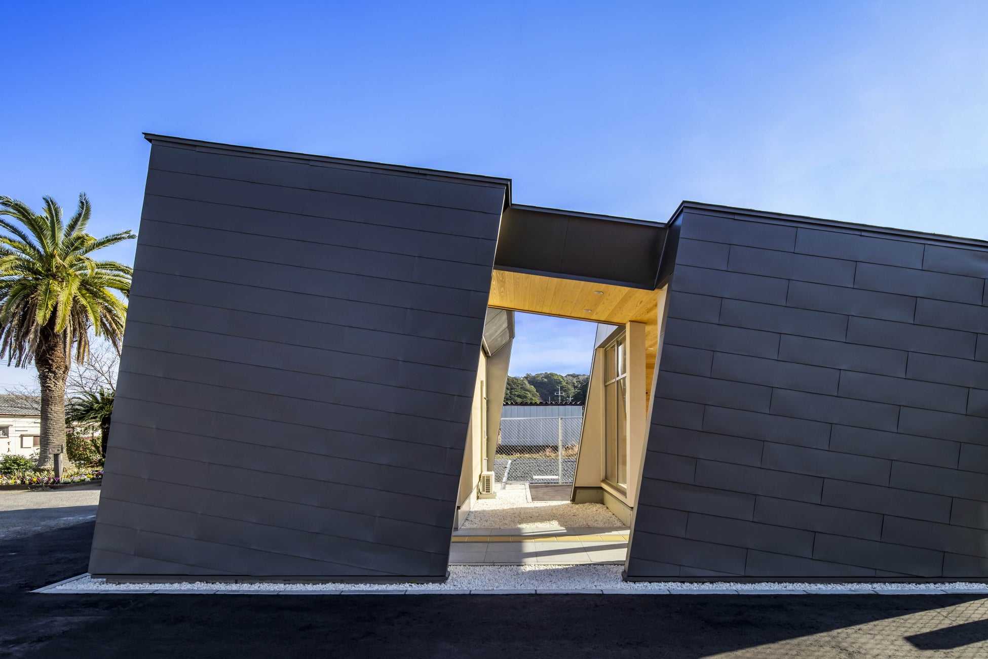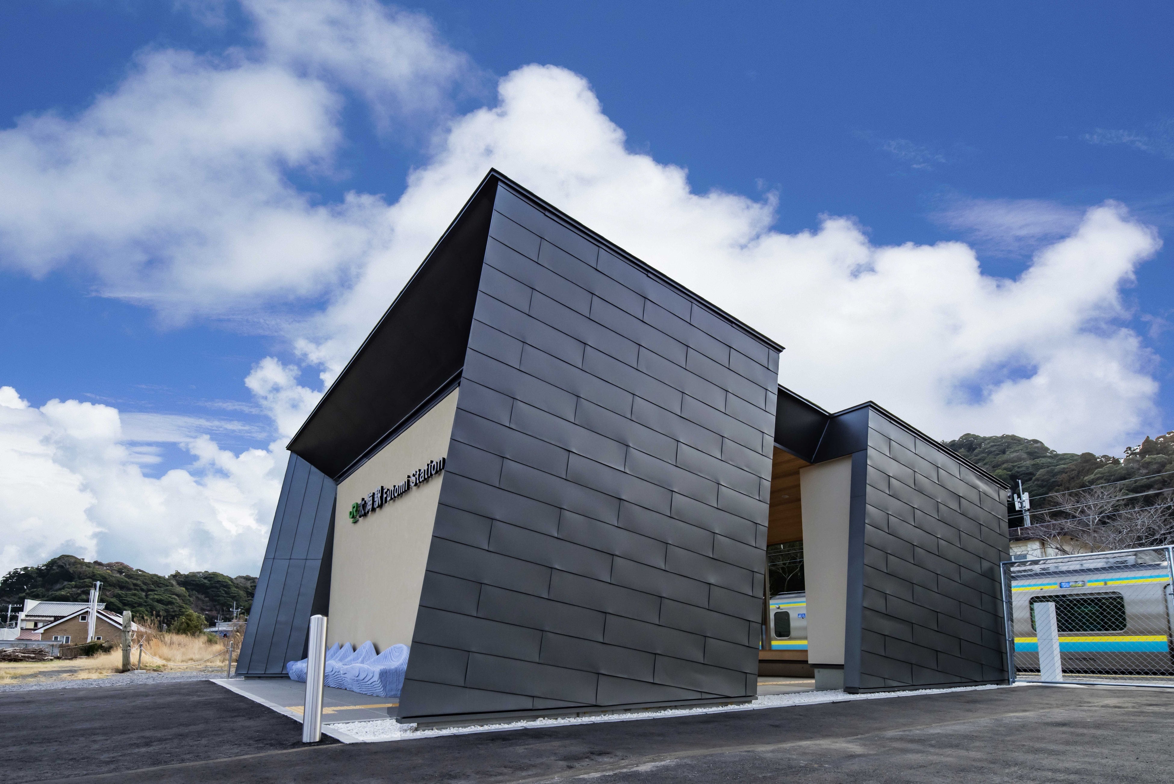 ■【JR内房線太海駅】は、老朽化に伴い駅舎を建て替えました。バックヤード部分は現在必要な運転設備規模にサイズを集約しつつ、太平洋を望む立地を生かした快適な駅舎を実現しました。海風を取り込み、風が通り抜ける特徴的な建物形状とすることで快適な待合空間の提供を目指している点が評価されました。