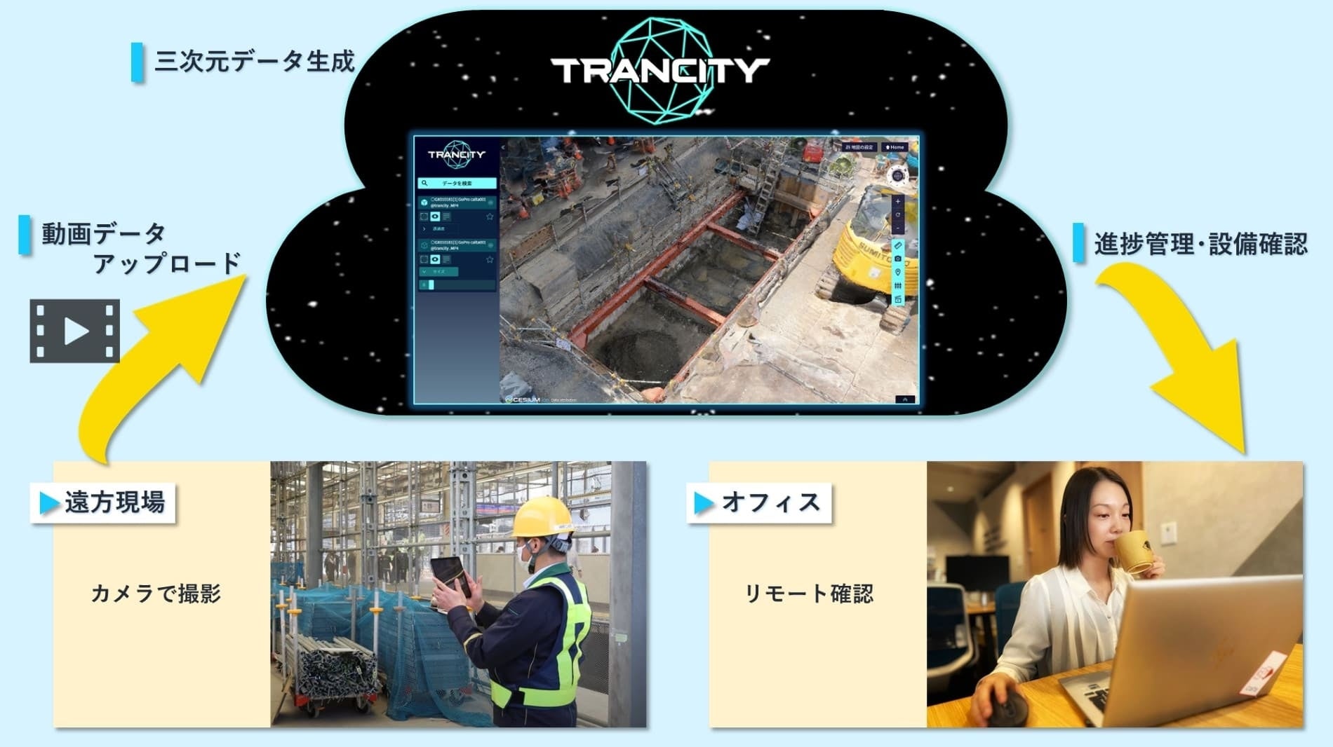 TRANCITYは、デザインと技術の組み合わせにより、伝統的な企業に力を与え、複雑な建設環境と企業ユーザーの操作マンパワー不足というペインポイントを効果的に捉え、ドローンや画像解析などの新技術を組み合わせ、便利な3Dデータ作成・管理方法を提供し、低コストで企業の作業効率を大幅に向上させている。 本製品は、複雑な建設環境の高精度3Dマッピングを明確かつ正確に表現することができ、インターフェースデザイン、グラフィック、色彩は、製品の機能を簡潔、明瞭かつ非常に親しみやすく正確に伝えるように設計されている。