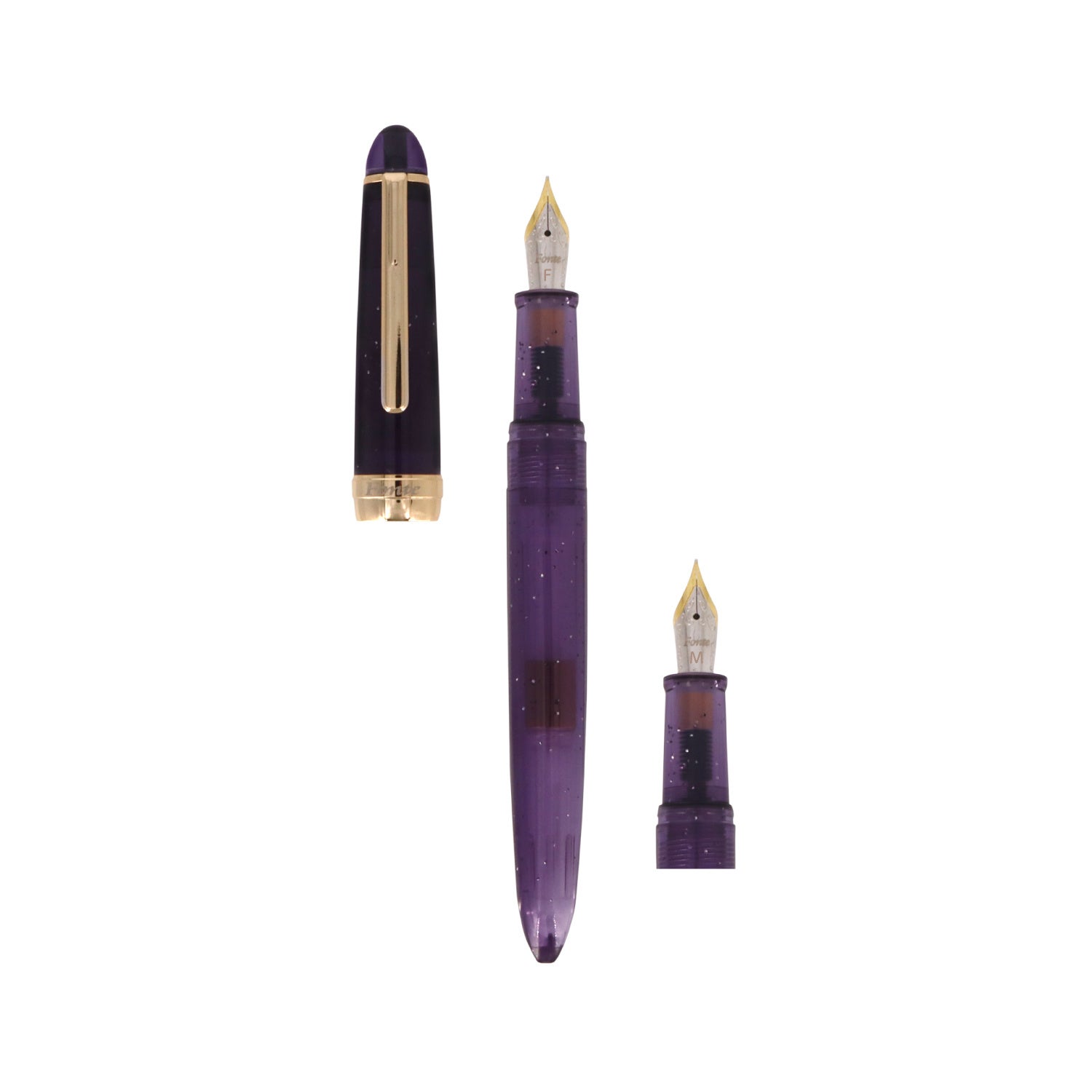 商品には、定番のF字(細字)ペン先に加え、付け替え可能なM字(中字)ペン先もセットされています。M字はF字よりもインクの濃淡が出やすく、万年筆ならではのインクの表情を楽しむことができ、文字を書くだけでなく、アート作品など多彩な用途で活躍します。