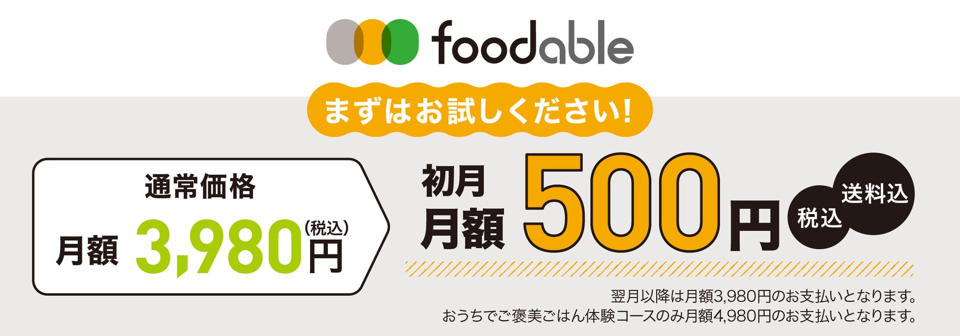 ※foodableサービス フードのみプランは本キャンペーンの対象外となりますのでご注意ください。