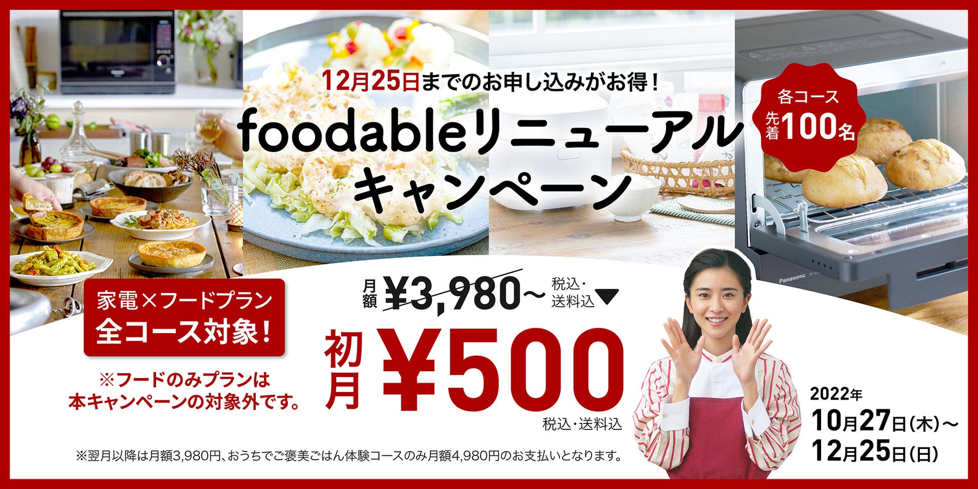 foodable新コース登場を記念して、foodable 家電×フードプランがお得にはじめられるキャンペーンを実施中!