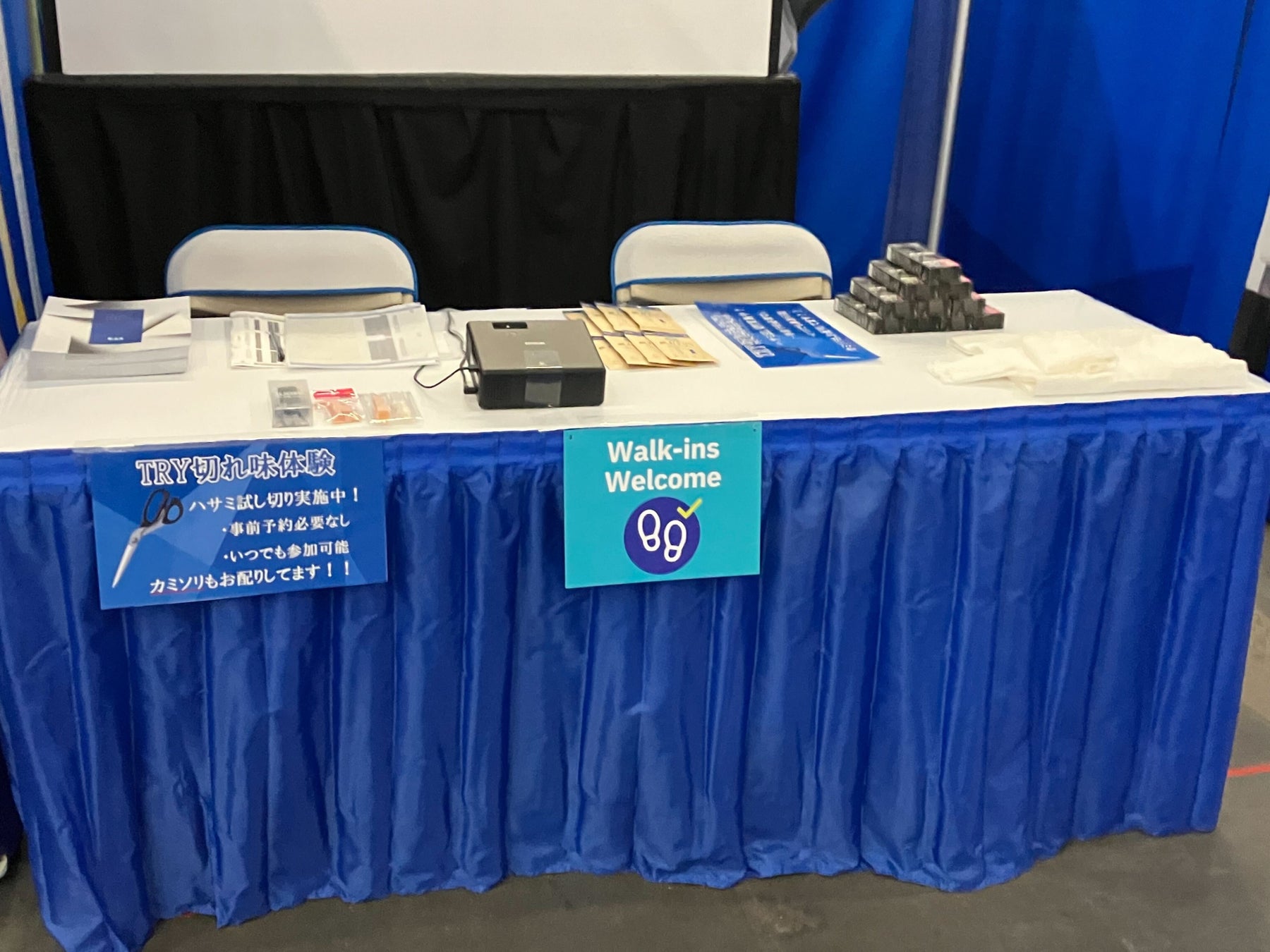 KAIのブースでは、フェルトを使った縫製ハサミの切れ味体験やネイルチップを使ったツメキリの切れ味体験、紙カミソリの組立体験など、貝印の製品に幅広く触れていただき、グローバルで活躍できる魅力をお伝えしました。