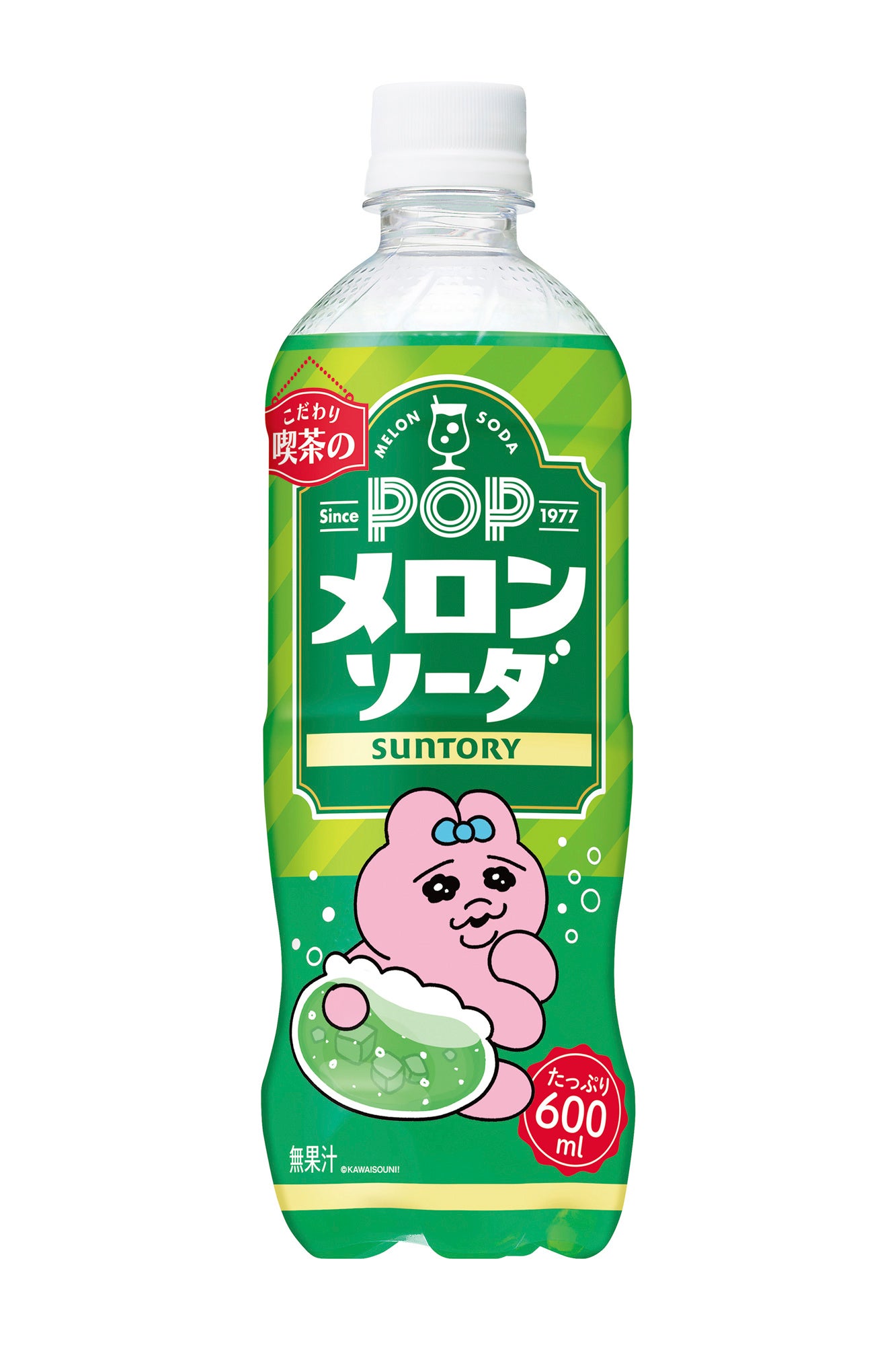 可哀想に!さんの作品『おぱんちゅうさぎ』『んぽちゃむ』とコラボレーションした「はしゃいじゃった!?ボトル」を、「POP メロンソーダ 600ml」(3種)、「デカビタパワー 500ml」(3種)、「C.C.レモン 500ml」(3種)、「なっちゃん りんご 425ml」(3種)の全12種で展開します。