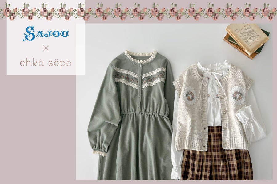 【ehka sopo】パリの老舗手芸店『Maison SAJOU』とコラボレーション・繊細な刺繍やレースを使用したレトロな秋アイテムを発売